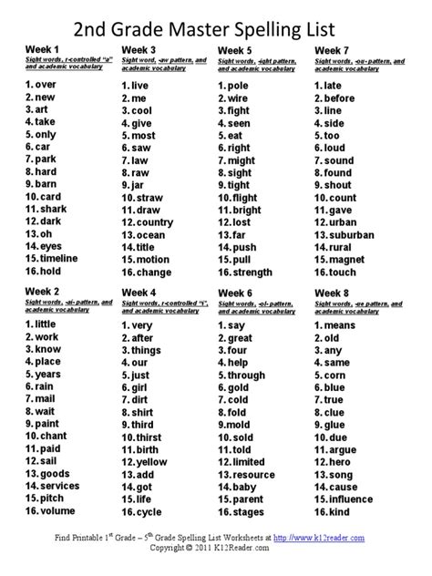 Web Second Grade Spelling Words List From K5 Learning.