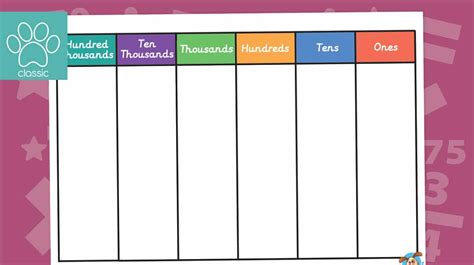 6 Digit Place Value Chart. Place value can be defined as the value represented by a digit in a number on the basis of its position in the number. Our place value charts feature whole.